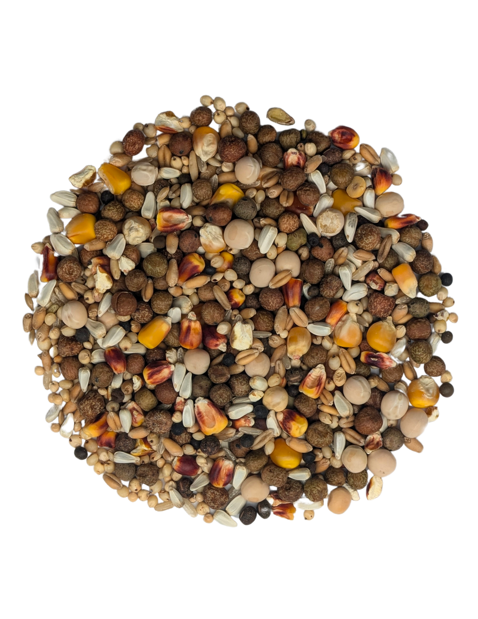 A diverse seed blend for maintenance including vetch seeds which contain amino acids, iron, and zinc, contributing to well-maintained plumage.