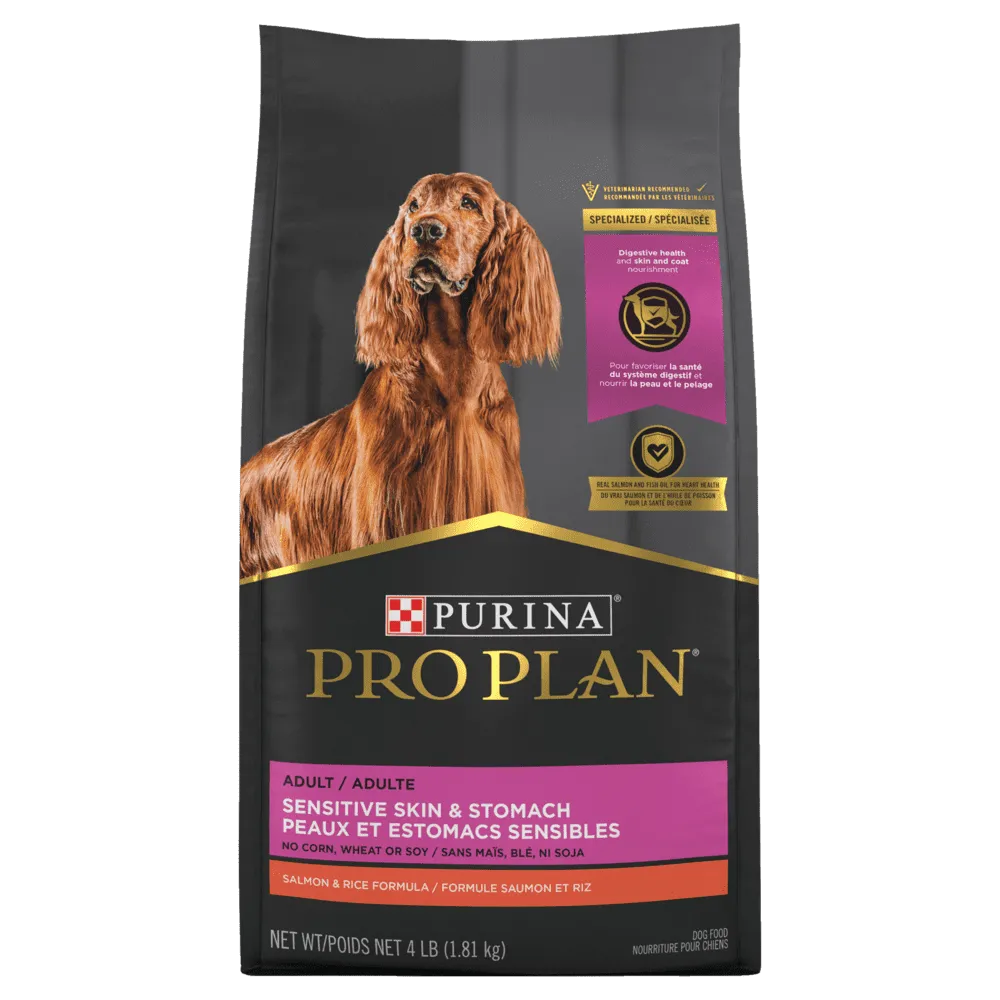 The Pro Plan Sensitive Skin & Stomach Salmon & Rice Formula 7.26kg is a high-protein dry dog food designed specifically for dogs with sensitive skin and digestive systems, featuring salmon as the primary ingredient for easily digestible nutrition.